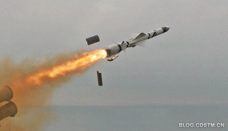 进行发射试验的MM-40 BlockⅢ“飞鱼”反舰导弹