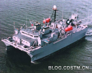 1993 年服役,满载排水量3 396吨。二者最大特点是采用小水线面双体船设计,执行任务时船尾拖着长长的监视声呐,主要用于探测敌方潜艇的活动。