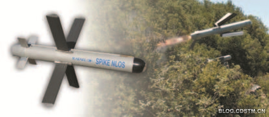 “长钉”系列导弹,从上向下依次为“长钉”非瞄准线导弹、增程型“长钉”导弹和远程型“长钉”导弹
