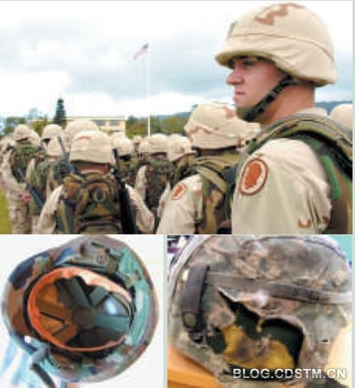 头戴PASGT 头盔的美军士兵们以及PASGT 头盔的内部悬吊系统和其战场上抗打击的效果