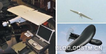 MBDA公司的TiGER巡飞弹(下)采用充气机翼,发射重量1.4 千克。国际航天技术公司的“指向并投掷”小型弹药(右上)采用手抛发射,但其续飞时间只有三分钟。达信防务系统公司的“战术遥控空中弹药”(右下)由两部分组成:一个经过改进的40 毫米杀伤/爆破榴Prioria机器人公司研发的“小牛”微型无人机平台。后者已经在加拿大军队中服役。