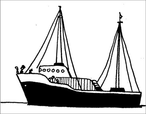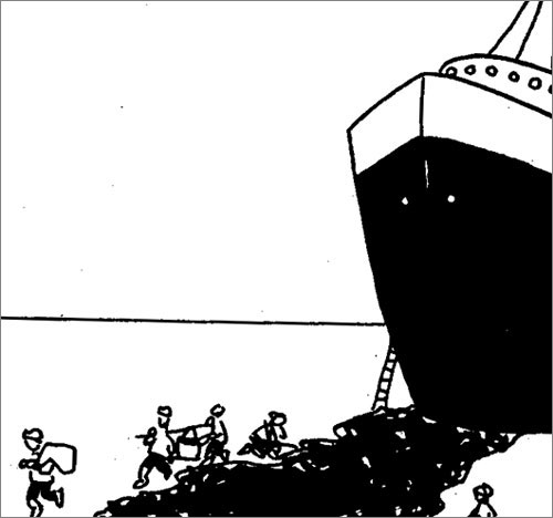 9、天刚破晓,所有船员一起动手,把船上所有的黑色东西——煤屑、锅炉烟道中的黑灰、黑布,全都倾倒在船前方的冰面上。