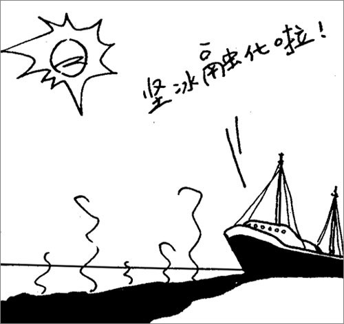 2、探险船刚到南极,便遇上一场特大暴风雪,温度直线下降,船员们一觉醒来,发现他们的探险船已被封在一望无际的冰原上了。