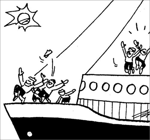 4、时间一天天地过去了,淡水、粮食越来越少,大家都焦急万分。