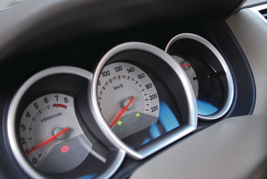 车内部的仪表盘采用桔红色的背景光,加上白色背板的仪表盘,读取数据一目了然。增加了可以读取MP3的6碟CD音响,空调的调节按钮进行了新的布局,调节更加顺手。空调系统采用了叫做一触式清洁智能空调,带全自动正负离子清新功能。如果外界空气质量下降,空调系统会自动切换到内循环。仪表盘增加了平均/瞬时油耗显示。