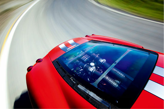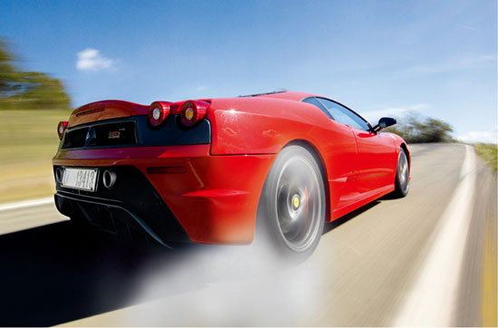 值得注意的是,Scuderia在Fiorano赛道单圈用时为1分25秒,与使用V12发动机的Enzo的单圈用时相同。也就是说,F430仅仅落后2秒。Scuderia采用全新的6挡F1变速器,可以节省宝贵的每一毫秒,而这种变速器的换挡速度几乎可以达到法拉利最新豪华旗舰型599的两倍。在转速超过3 000r/min和踩下加速踏板40%以上时,挡位可以自动切换至超高速模式。Scuderia不仅在换挡方面优于F430,其发动机的咆哮也更为美妙,即使Carabinieri的警笛也只能自惭形秽。当V8发动机的转速接近极限转速8 640r/min时,轰鸣的发动机噪声简直令人心烦意乱,这显然违反了欧盟核准的规定。