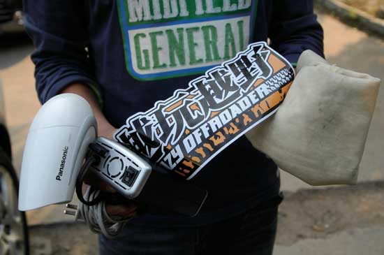 其实去除车贴完全不用如此费劲,一块软布、一个风筒、一点点的耐心,就可以让除胶剂、抛光轮统统见鬼去。我们现在就展开对贴纸的“热情攻势”。