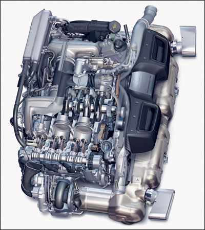 尽管空气的供应得到了改善,可变几何涡轮增压器压缩的空气还是要流过与以前车型上的热交换器基本相同的两个中冷器:侧板内Turbo特有的进气口后面的导管,最窄处的截面比以前增大了近10%,这样减少了流动阻力,中冷效率更高并提供更大的功率和扭矩。