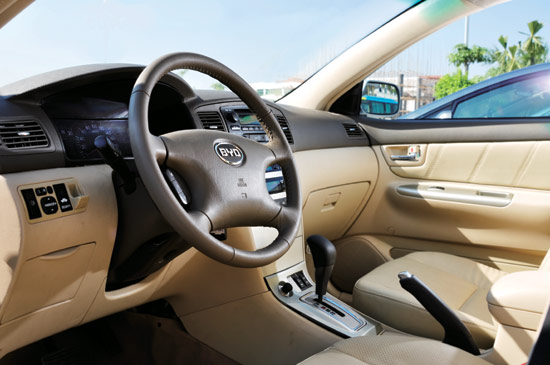 既然如此,那还等什么?上车走人!看了一下F3DM双模电动车的操作指南,发现与一般自动挡车辆的操作几乎没有什么区别,略有不同的是不需要“打火”的步骤,上车后只要将钥匙转到“ON”的位置车辆就可以启动了,还是十分方便的。正常起步,发现比亚迪F3DM的动力不错,没有因为应用电机驱动而降低性能。行驶起来的感觉也和一般的汽油发动机车型很像,按原来的驾驶习惯就可以,不用为它做出什么改变。由于车辆此时电力比较充足,汽油发动机并没有运转,因此整个行驶过程中可以感觉明显比普通汽油车安静,振动也略小。而车辆不动的时候(相当于一般车怠速时)是没有一点振动和噪音的。