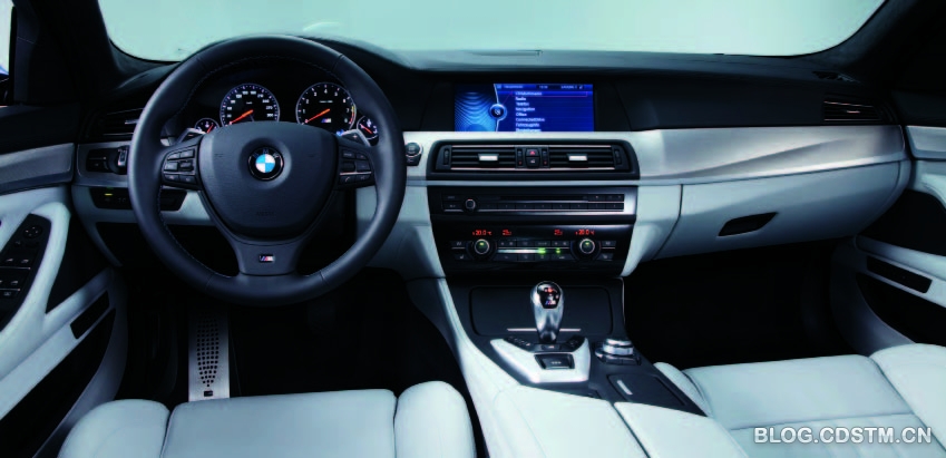 驾驶室内的布局与普通版5系一样,只是增加了M系独有的套装,包括仪表盘,特有的换档杆,M真皮方向盘与换挡拨片,运动型座椅头枕和真皮包裹的中控台上都压上了M标志。高端配置包括标配抬头显示器及10.2英寸大屏全彩显示器和增强智能电话系统,除此之外,M5还配备了宝马夜视的行人识别自适应大灯变化预警系统,车道偏离警告系统,并可实时接收交通信息,在车上也可随时登录Facebook和Twitter,微博控们一定喜欢得对这个爱不释手。