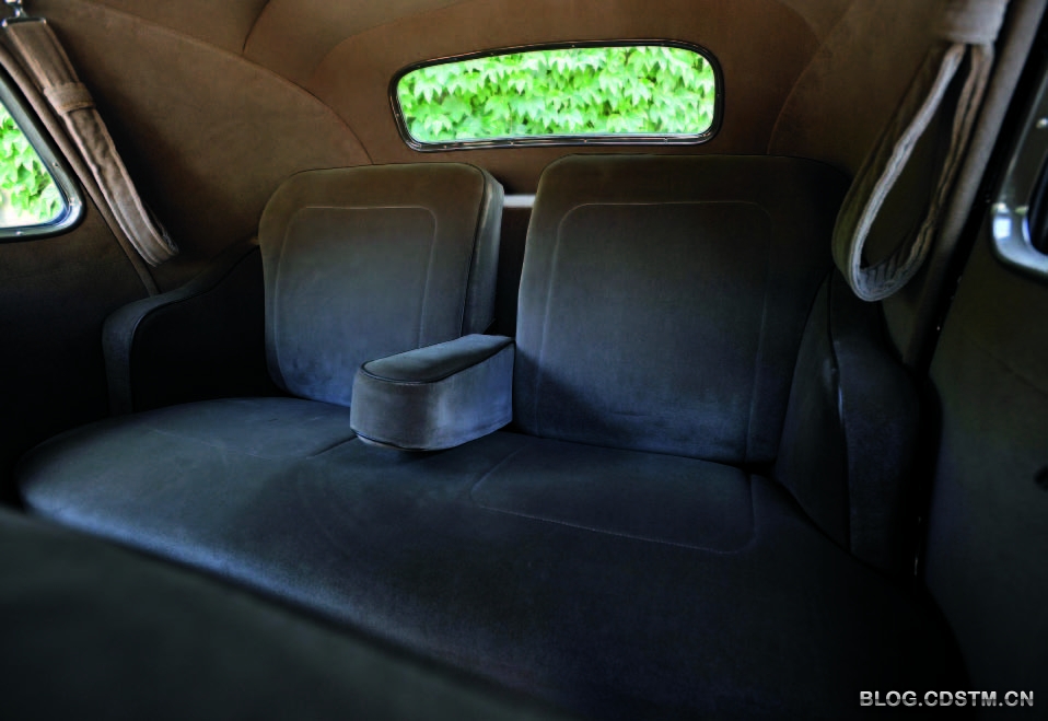 后座绝对是T R A C T I O N A V A N T 最值得大书一番的地方,由于采用了前置前驱的结构。T R A C T I O N A V A N T 得到了一个非常平坦而宽敞的后排空间。而后座位于整个车厢的最后面,乘客的头部隐藏在了C柱之中并且后排腿部空间得到了空前的释放。即使用今天的眼光来看, T R A C T I O N A V A N T 平坦而巨大的后排空间搭配深深嵌在车厢中的舒适的沙发座椅,也足以称得上帝王级享受!