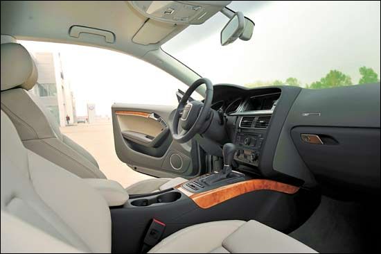 但是优雅的奥迪对抗奔驰、宝马的雄心却又暴露无疑,越来越丰富的车型足以说明这一点,从全尺寸的SUV Q7到超级战车R8,奥迪无疑是成功的。A5的推出,进一步丰富了奥迪的战线,作为介于A4与A6平台之间的一款车型,奥迪A5在与奔驰CLK和宝马3 COUPE竞争的时候便占有了优势,这是奥迪的战略。实际上,奥迪A5不仅保证了前排乘客的舒适性,而且后排乘客的空间也得到足够的照顾,至少身高1.75m的我坐在后排并不觉得委屈,作为临时性的乘客这已经让我相当感激。当然,奥迪在新闻稿中陈述A5是一款适合4人长途旅行的轿跑车,这样的言辞是基于2 751mm的轴距,较长的轴距也成为保证后排空间的决定性因素,但既然是双门跑车,一家人的旅行毕竟不是A5需要执行的重要任务,那么和女友兜风应该是必备的任务之一。
