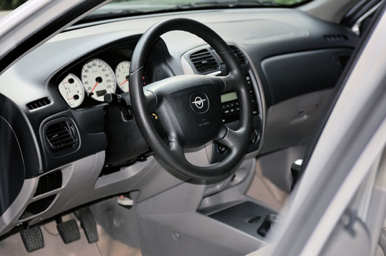 初见海马海福星,并没有引起太大的注意,它的外观低调得甚至有些近乎平庸。海福星在老323的基础上没有变动,银灰色的车身更使整车显得并不引人注目,虽说造型成熟稳重,但感觉似乎缺少了一些时尚元素。坐入车内,发现海福星的内部布置得简洁而实用,内饰没有太多花哨之处却功能齐全,绒布面料的座椅做工比较细致且软硬适中,加上后排空间也不错,坐在海福星车内总有一种很贴心很人性化的感觉。