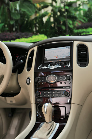 可以肯定这款发动机适合更多的客户,不是所有人都拥有舒马赫那样的驾驭天赋,更为平缓的输出特性会让你在上下班的途中能够惬意一些,要知道在拥堵的城市中,0~100km/h的加速时间远没有百公里油耗数据来得实在。但这依然是一辆英菲尼迪不是吗?当你深踩油门,随着发动机的轰鸣声传入驾驶舱,速度指针也会飞快地运动起来,此时此刻你会明白EX35跑车化的外观并非装饰,在那些身型更为灵活的车中,只有极少数有能力成为EX35的对手。与杰出的VQ35发动机配合的是一款5挡手/自一体变速器,它由高度智能化的管理程序控制,其自适应功能可根据不同的驾驶习惯调整换挡时机,顺序式的手动模式具备降挡转速匹配功能,可模拟赛车驾驶的“跟趾”动作,迅捷平顺地完成手动降挡,它带有明显的英菲尼迪痕迹,虽然发动机变得更为舒适,但只要换到手动模式你就不会感到乏味。