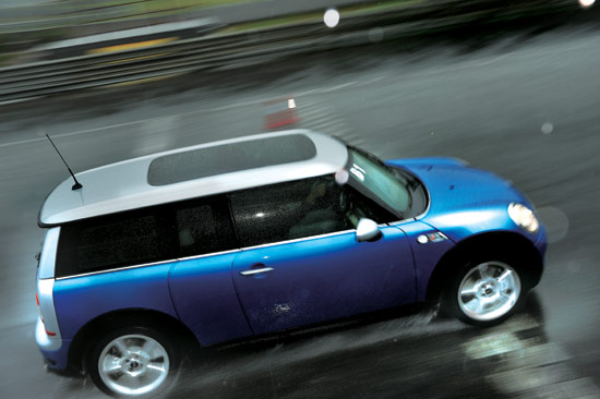 在上海一个小型赛车场,最新上市的两款MINI新车在大雨中等待我的体验。这辆款车就是MINICooperS和CooperSClubman,虽然同之前我们试驾过的Cooper系列外观上区别不大,但是这可是最原汁原味卡丁车般的驾驶体验。