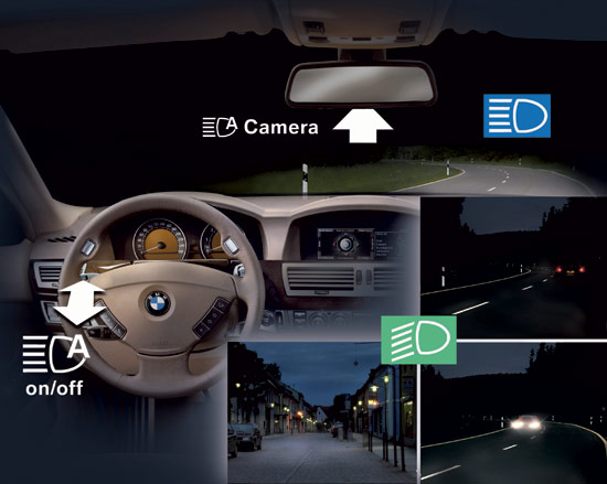一项调查表明,在实际驾驶中,人们很少使用远光灯,并且一旦打开后还总是忘记及时将其关闭。由于频繁地打开和关闭远光灯是一件非常麻烦的重复性操作,因此在所有适于采用远光照明的驾驶环境中,人们真正使用它的情况却只占25%。对此,BMW开发出了远光自动控制,在道路本身的照明情况不佳时,系统会在前方无车或对面无车驶来时打开车辆的远光灯,一旦对面或前方有车、道路本身的照明效果改善、车速降低,即远光灯不再有助于提高安全性时,系统将自动关闭远光灯。这一功能不但能够令驾驶者在夜间的驾驶更加轻松,还能够避免对其他道路使用者造成眩目,出色地提高了道路的整体安全性。