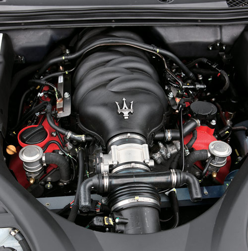 下面进入QuattroporteS的升级核心——全新的V8发动机。为了更好地提升动力,玛莎拉蒂将一台4.7L发动机装入了新车,它的最大功率增加到317kW,最大扭矩提升到了490N·m,虽然同样来自法拉利,但是玛莎拉蒂采用了全新的湿式油底壳,保证了发动机工作的平顺性和强劲的动力输出,最高转速也达到了7200r/min。同时,玛莎拉蒂通过对发动机的进、排气管的外形进行重新设计,在进气凸轮上配置定时预处理器,优化燃烧室,使得发动机在2500r/min就能输出82%的扭矩,这在城市公路行驶尤为重要。