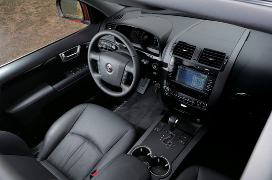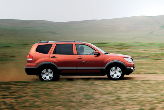 为验证霸锐出色的路上性能,我们选择了夏日的草原,翻过一座座山,到达蓝天和草地的世界。霸锐的车身毕竟很大,轴距太长,虽有出众的悬架系统,依然无法避免转急弯时的侧倾,尤其是后排的感觉比较强烈,这源于后轮的转向不足,有向外甩的趋势,轮胎的动作有时会反应到车里。高悬架对于坑洼路面柔韧有余,草原上行驶可以肆意驰骋,悬架的对路面状况的过滤效果很好,车内没有出现过多的颠簸。霸锐的噪声控制值得称道,安静的草原上,凶悍的发动机却更加安静,怠速在车中竟感觉不出发动机的运转,发生了数次重复打火的现象。行驶在路上时,车内乘员自然也不会为发动机或车外的噪声烦心。