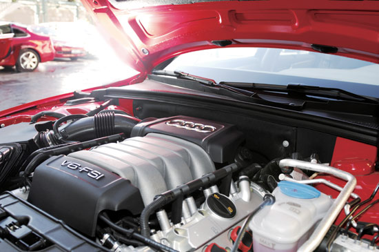高性能版A4L搭载一台我们熟悉的3.2FSIV6发动机,采用奥迪燃油直接喷射技术,搭配AVS可变气门技术,是高效和绿色的结合。同A6L的动力调校一样,195kW最大功率和330N·m最大扭矩,但是由于A4L比A6L重量轻一些,所以0~100km/h加速时间可以达到6.9秒,6挡tiptronic手/自一体式自动变速器换挡时间更短,动力的输出是源源不断的,你基本上感觉不到换挡的顿挫,平滑间车速已经达到道路限速的极限。