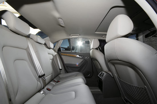 不可否认的是,全新奥迪A4L外形十分地抢眼,即使是刚刚上市的新宝马3系,同A4L相比还是显得略微保守。家族式的“大嘴”格栅、同A5相似的LED泪眼形前大灯是整个车头最画龙点睛的一笔,它由14颗LED灯组成,被称为日间行车灯,这主要是由于欧盟的法规:白天车辆也要亮灯。但是中国版A4L好像并不支持这一功能,白天并不会自动点亮。既然是“L”版,那么尺寸便成了它俯视对手的资本,2 869mm的加长轴距比欧版增加了61mm,而这部分尺寸毫无保留地贡献给了后排乘客。整体车身结构并没有因为加长尺寸而显得笨拙,相反侧面看起来十分的修长。因为加长了轴距,为了不影响整体的车身稳定性和驾驶感受,奥迪A4L在转向系统上进行了改进,将前轴向前挪动了154mm,这样一来转向器下移更接近车轮,增加了转向精度,同时路面反馈信息更直接。对于注重驾驶的消费者来说,奥迪A4L的前后轴载荷比得到了几乎完美的比例,2.0TFSI的前后轴荷比达到51:49,而动力更为强劲的3.2FSI则具有几乎50:50的完美比例,这样的分配使得奥迪A4L比上一代具有更为出色的驾驶特性。