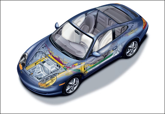 透过低矮的车窗,穿过迷人的外形,汽车的另一种魅力将会散发出来,那就是技术的魅力。细致的近乎固执的德国人对于打造一件机械产品无疑是十分在行的,不管技术还是工艺,无论科技还是经验,德意志民族都具有相当实力。相对于艺术而言,他们对于技术的把握显得更加娴熟而自如。因此,当一辆保时捷来到面前时,我们相当乐意打开车门到它的内部一探究竟。