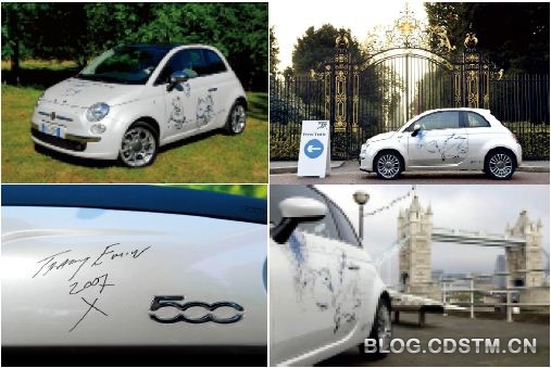 新款菲亚特500一经推出便吸引了艺术家们的眼光,迅速成为他们表达自己思想的载体。菲亚特公司更是将新推出的500提供给艺术家们发挥他们的想象力,并且将这些车作为慈善募捐的拍品,为世界上需要帮助的人们筹集善款。