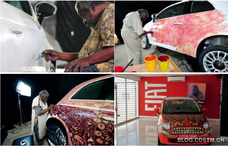 也许在大多数地方,一个新的汽车经销店开业未必是一件大事。但在一些发展中国家的小城镇还是值得庆祝的。在莫桑比克新开业的菲亚特和阿尔法罗密欧经销店开业典礼上,Malangatana绘制的艺术车同样引人注目。