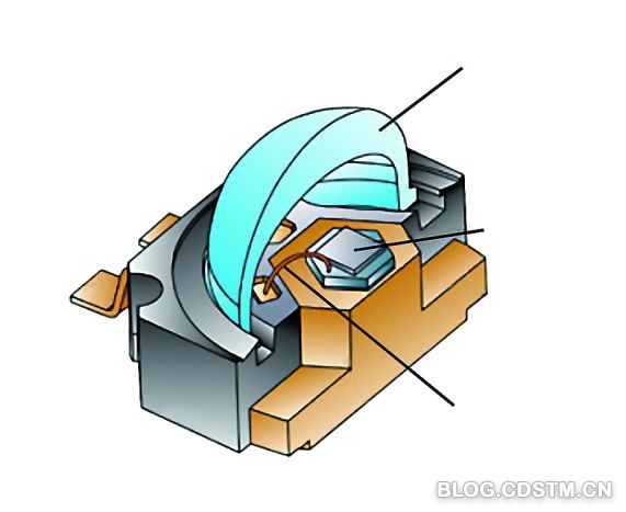 光束生成于芯片中,芯片相当于一个半导体,光束通过芯片由电压电子在不同的应用层来回。通过这种来来回回的“转换”即可产生能量,并是以光的形式。塑料透镜使光聚焦。