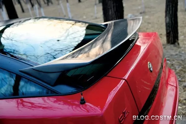 说实话,以我的视觉习惯,我觉得这辆车的侧面和后部造型比例称不上美,甚至有些失调。从前鼻开始高高昂起的腰线到后尾被齐齐的一刀斩断,由于腰线非常高,而轴距和车长又都非常有限,从侧面看去这辆车有点像一辆比例略微失真的儿童玩具车,不过条形的熏黑尾灯和位于C柱上端的尾翼又瞬间的打消了这种感觉,因为这些设计手法和尺寸的拿捏都太老道了,尤其是后尾左侧的S.Z 字样更是瞬间让人觉得这幅车身的出身不一般,处处显露出设计者的毒辣手笔。