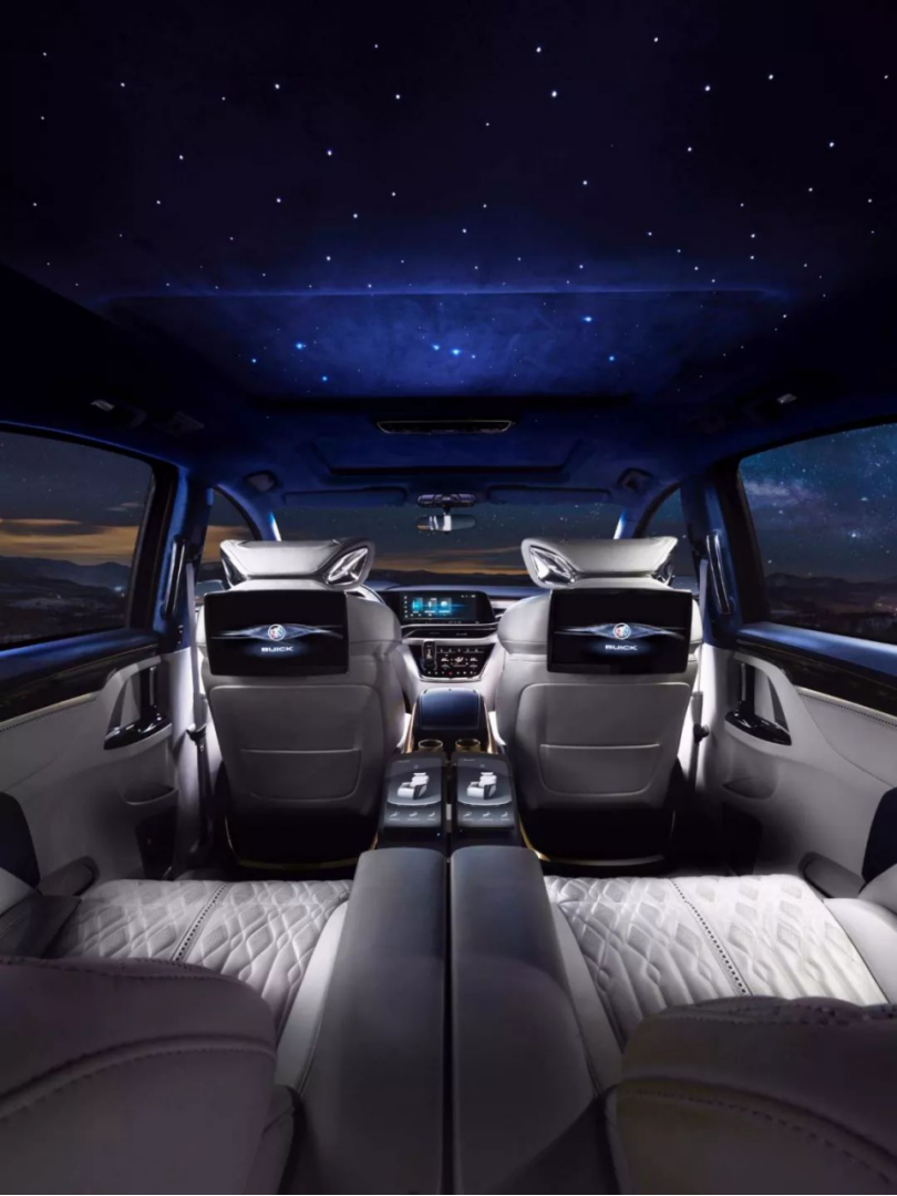 而在内外设计方面,别克GL8 Avenir概念车也是充分彰显了个性。在车辆格栅处,采用了浪花的设计,通过光线不同角度的照射,可以产生波光粼粼的感觉。而除此之外,在格栅中央汇聚的位置,还形成了一个元宝的造型,算是一个额外的小彩蛋了。而在内饰方面,就更是别克GL8 Avenir概念车的亮点所在了,前舱采用了双12英寸大屏加HUD抬头显示的设计,并且这款HUD性能很强大,相当于在2.8m的距离上显示一个15英寸的虚像,大幅提升车辆的驾驶便利。当然,全车4座的设计就更直观了,GL8后舱宽大的空间交付给两个独立座椅来使用,自然可以实现无比舒适的出行体验。不仅两个独立座椅非常宽敞,还拥有展翼式的扶手,后排乘客乘坐空间、储物空间都很出色,也不会相互打扰。并且其实GL8车型车内设计上的一个特点就是会比较少有横向的阻隔,这样你会感觉车内的空间特别宽敞,使用起来特别方便。