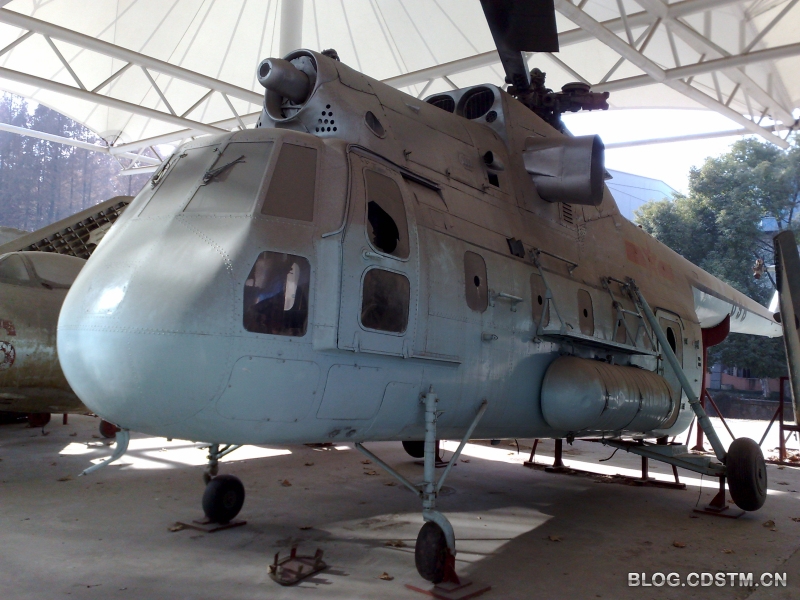 在与UH-1H相对的另一个角落,停放着一架军绿色直升机,这架直升机上涂有“八一”军徽,从外形上来看,它跟美国著名的贝尔-47直升机很相似。这架直升机的身份也很特殊,它就是国产701型直升机。1962年对印自卫反击战期间,我军缴获了一架印军贝尔