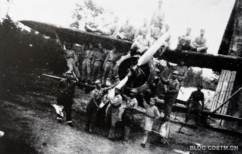 图04 中国空军飞行员在受损的Hs.123飞机前拍照留念