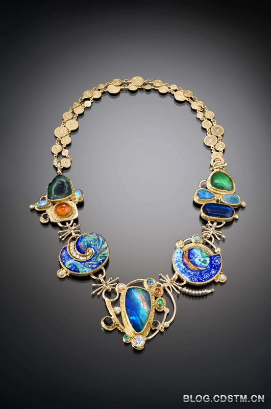 玛丽安妮•亨特(Marianne Hunter)设计的这款名为“银河漩涡”(Galaxies Whirl)的项链,使用了美国珐琅、黄金、宝石和陨石,精心构建出巧夺天工的银河星云图案。把它戴在胸前,是不是与威尔•史密斯《黑衣人》中的那只“胸怀银河”的猫咪一样淡定?价格尚未公布。