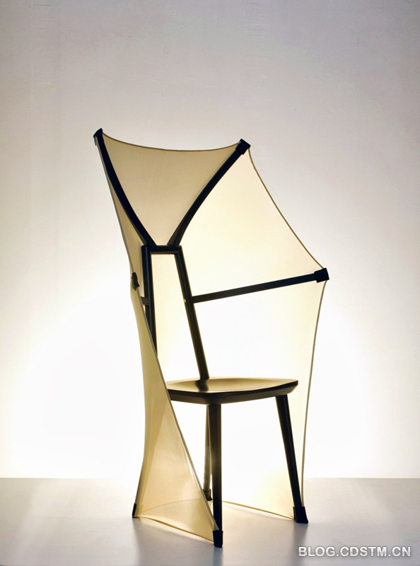 这张看起来像蝙蝠的椅子可不是设计师心血来潮的结果,瑞典-法国设计工作室färg & blanche这款Fly F-A-B新概念椅子是专为参加巴黎设计师节期间在Musée des Arts et Métiers举办的设计革命展准备的,设计灵感来自法国著名航空先驱克莱门特•阿代尔(Clément Ader)设计的飞机Avion III——后者的灵感来自蝙蝠翅膀。