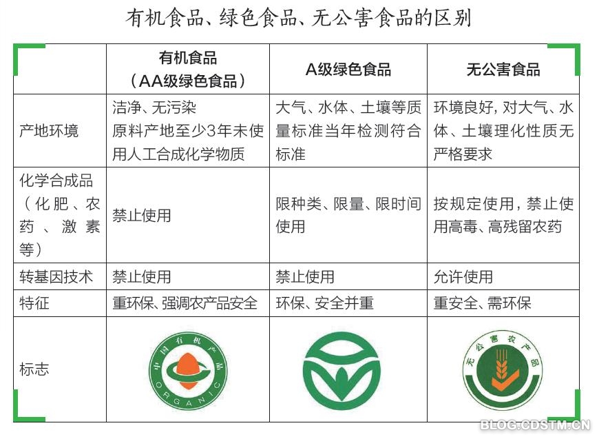如果看了上面这些您还是没有分清有机食品、绿色食品和无公害食品的区别,也许下面这张对比表能够更加清晰地帮助您了解三者间的差异。