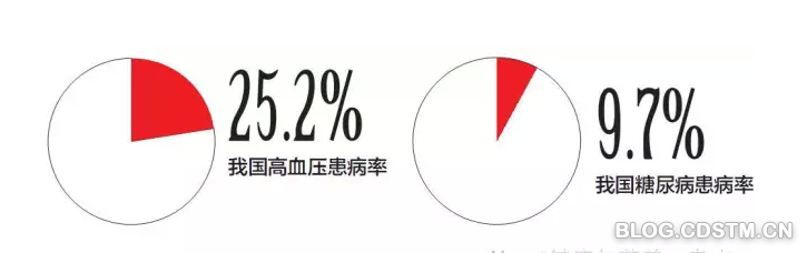 数据显示:成人高血 压、糖尿病的患病率逐年上升,比10年前分别提高了6.4%和7.1%,癌症的发病率也逐年升高,肺癌和乳腺癌分别位居男、女性癌症的首位。慢性病患病率的普遍上升,与人口寿命延长、社会老龄人口增多存在一定的关系。