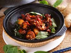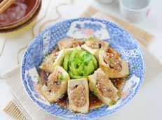 多数的客家菜都具有特殊的人文内涵,以客家酿豆腐为例,别看只是一道豆腐,却被称为客家第一大菜,它蕴含着客家人浓郁的思祖情节。制作酿豆腐原料简单,只需要豆腐和猪肉,最好选客家豆腐,只有软硬度适中的客家豆腐才足以应付开膛破肚的“大手术”,又能在口感上与肉馅相得益彰。制肉馅时用三分肥七分瘦的猪五花,肥而不腻,手工剁碎后可加上马蹄碎、香菇碎,也可随意搭配少许虾仁、瑶柱、鱼肉等一些南方盛产的食材,一起拌匀制成馅料。