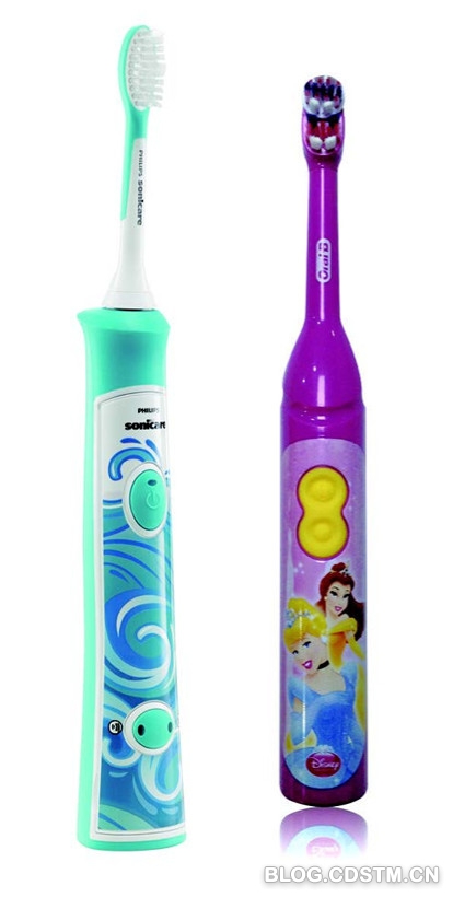 电动牙刷在外观设计上也会根据孩子的特点,设计一些色彩缤纷的刷头,或者贴画,让孩子可以根据自己的喜好随时更换。孩子们也会因为电动牙刷让他们觉得新奇而爱上刷牙。临床研究表明,儿童电动牙刷能够去除儿童刷牙时刷毛难以触及的区域之中75%的牙菌斑,在7~10岁的儿童中,使用声波振动牙刷的儿童刷牙时间比使用普通牙刷的儿童有明显的延长。
