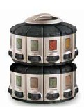 这是一款获得过大奖的可控调料盒,像旋转木马一样的双层设计,从外观上就吸引眼球, 超大的容纳空间可以每种调料装130 g,双层设计可以放55种不同的调料,并且每罐调料都有自己的标签和调料勺。有了这款调料盒中的高富帅,从此厨房再也不会杂乱无章。