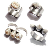 什么是最独一无二的戒指?你自己的智齿、乳牙做的戒指算不算only one?听起来虽然有点吓人,但它却确实够独特,来自澳大利亚银器艺术家Polly van der Glas就有着把人牙制造成戒指的手艺。相信很多人都保存着小时候换下来的乳牙,还有一些人因为智齿的疼痛而拔掉它们,这些给你带来成长和疼痛的牙齿经过消毒加工等一系列工艺后,可以成为来自你身体一部分的唯一礼物。你可以送给养育自己的父母,也可以送给亲密的爱人,虽然材质奇特,但有着非凡独特的意义。呃!当然,千万不要因为想要送给爱人这么独特的戒指非要弄掉几颗牙齿。