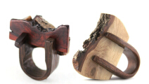 艺术家Gustav Reyes带来这款充满原始复古风的纯手工原木戒指。这些戒指上看似陈旧的木头有的来自名家演奏的小提琴,也有的来自于知名运动员训练废弃的棒球棒,贵贱不一的木料组合,赋予了它们全新的意义。完全原始的木头只经过一些防腐处理不经打磨, 戴在手上舍弃了珠光宝气的矫情,配合着情感静静看岁月流逝,与世无争,木香飘逸。