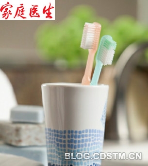 也就是说,牙刷使用完毕后,摆放时最好能使刷毛斜着朝下,这样牙刷残留的水分就会随着重力作用往下滴,即使里面还含有少量的泡沫和污垢,也会随着水从牙刷里滴走,不至于存留在牙刷底部。