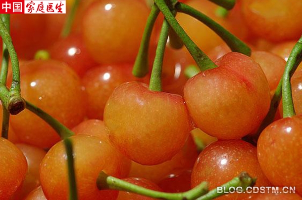 樱桃很适合女性吃。每百克樱桃果肉中铁的含量是同等重量草莓的6倍、枣的10倍、山楂的13倍、苹果的20倍,居各种水果之首。