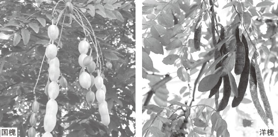 两种槐树区别最明显的是果实的形态。国槐的果实像念珠一样,而且成熟后不会裂开;而刺槐的果实为扁圆形,成熟后会裂开。它们两的花期也不一样,刺槐一般在五月就开花,而国槐要到七月才开始开花。此外,刺槐的小枝上有刺,国槐没有。如果仔细辨认,可以发现它们的树皮也不一样,刺槐的树皮会裂得很深,而国槐的树皮只有浅裂。