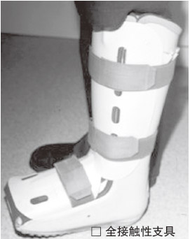 全接触性支具是治疗糖尿病足底溃疡最有效的方法之一。它可以使足底承受的压力重新分布,减少承重力,防止足畸形,又可以带支具行走。它主要优点是不但可以使病变的关节制动,还可改变和纠正神经病变所致的足部压力异常,减轻局部压力,可以让患者持续减压,即使在行走时也能让患处得到很好的保护。像徐老师足底反复发生溃疡,可用支具以减轻局部压力,也可以在支具上开窗,使溃疡面暴露又不接触地面。