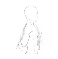 直立位,健肢在前,患肢置于身后,以一绳从健侧肩部绕过,双手分别握住绳子两端,健肢向下拉动绳子以带动患肢向后上运动。做20次。