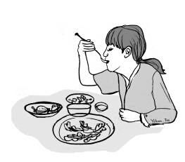 大脑发出吃饱的指令大概需要十几分钟,如果你火急火燎地就吞下去了一桌子美食,估计还没反应过来胃就已经撑爆了。细细地品位每一口饭菜,不仅能感受食物的美好还能帮助唾液和胃液很好的分泌消化食物。