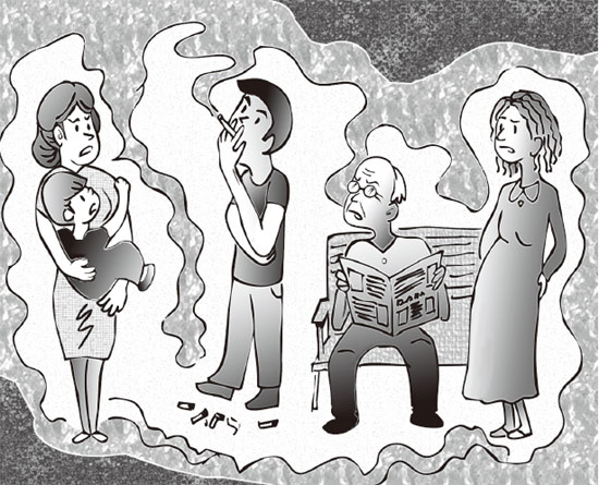 可见,在二手烟的问题上,不但吸烟者的行为理应受到约束,被动吸烟的受害者也应大胆地说出自己的不满。捍卫自己的健康是每个人的权利,希望大家在面对二手烟的侵害时,都能勇敢地站起来,义正辞严地说一句:“请不要在我面前吸烟。”