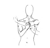以健侧手握住患侧肘后,抬平患肢,并逐渐向健侧牵拉内收患肢,做20次。