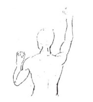 直立位,健肢在前,患肢置于身后,以一绳从健侧肩部绕过,双手分别握住绳子两端,健肢向下拉动绳子以带动患肢向后上运动。做20次。